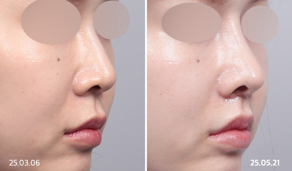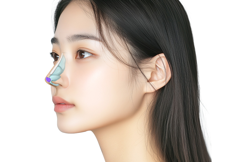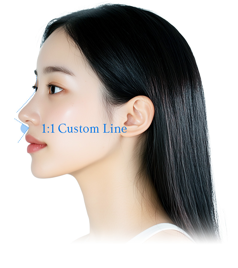 코 시작점부터 코 끝까지 곡선을 그리는듯한 라인으로 기존의 버섯라인보다 자연스럽고 부드러운 이미지